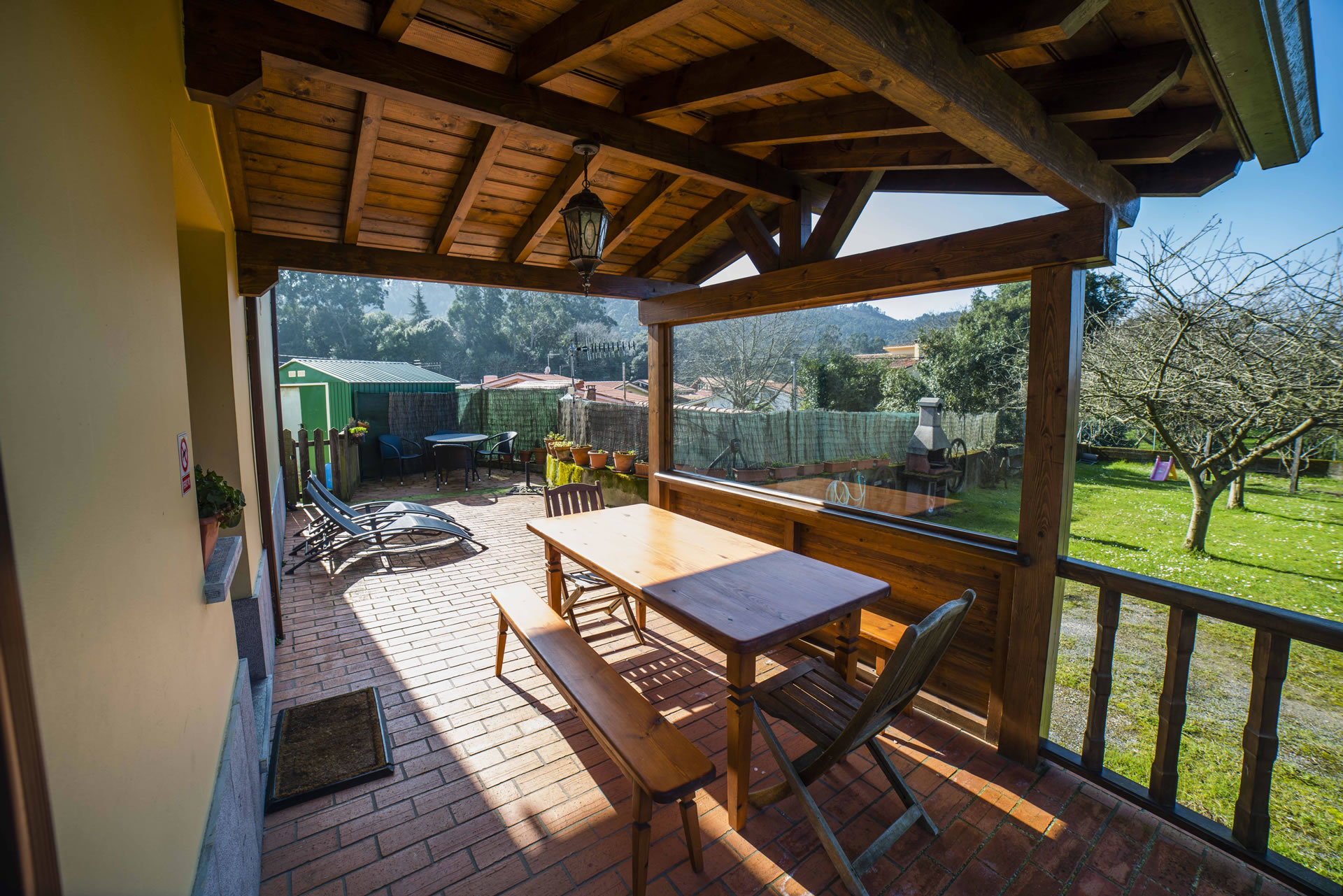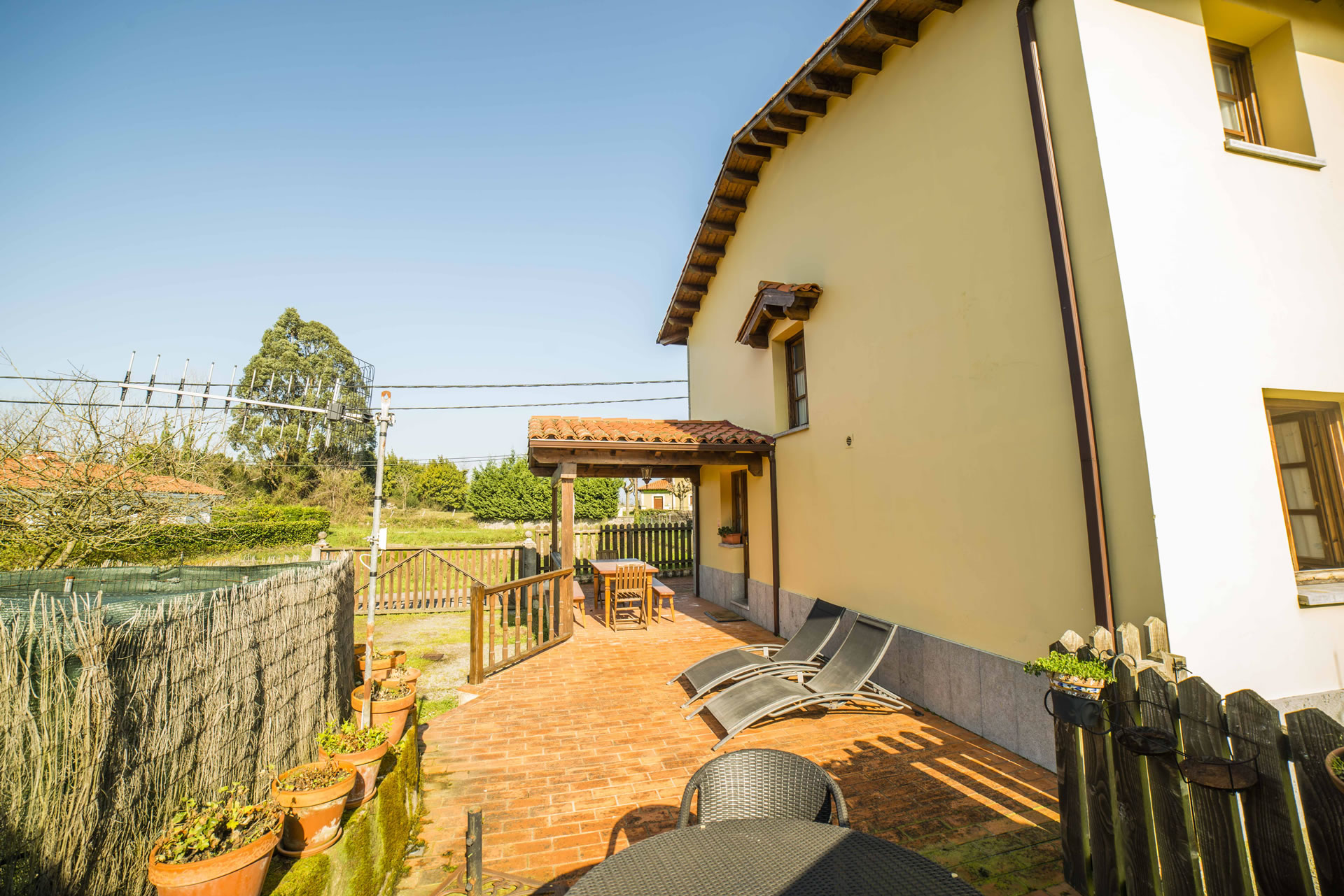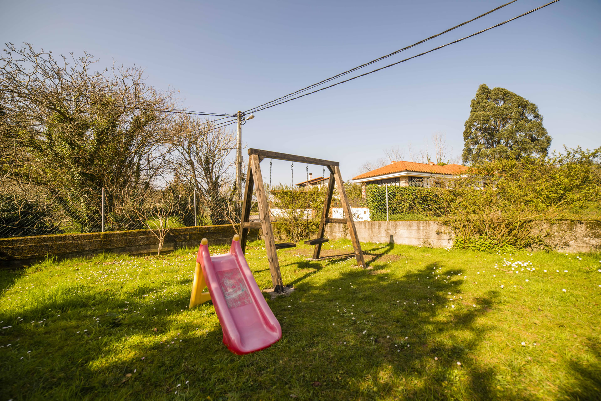 Es una preciosa casa de aldea de 3 trisqueles, cerrada, con terreno y árboles frutales, columpios y barbacoa.